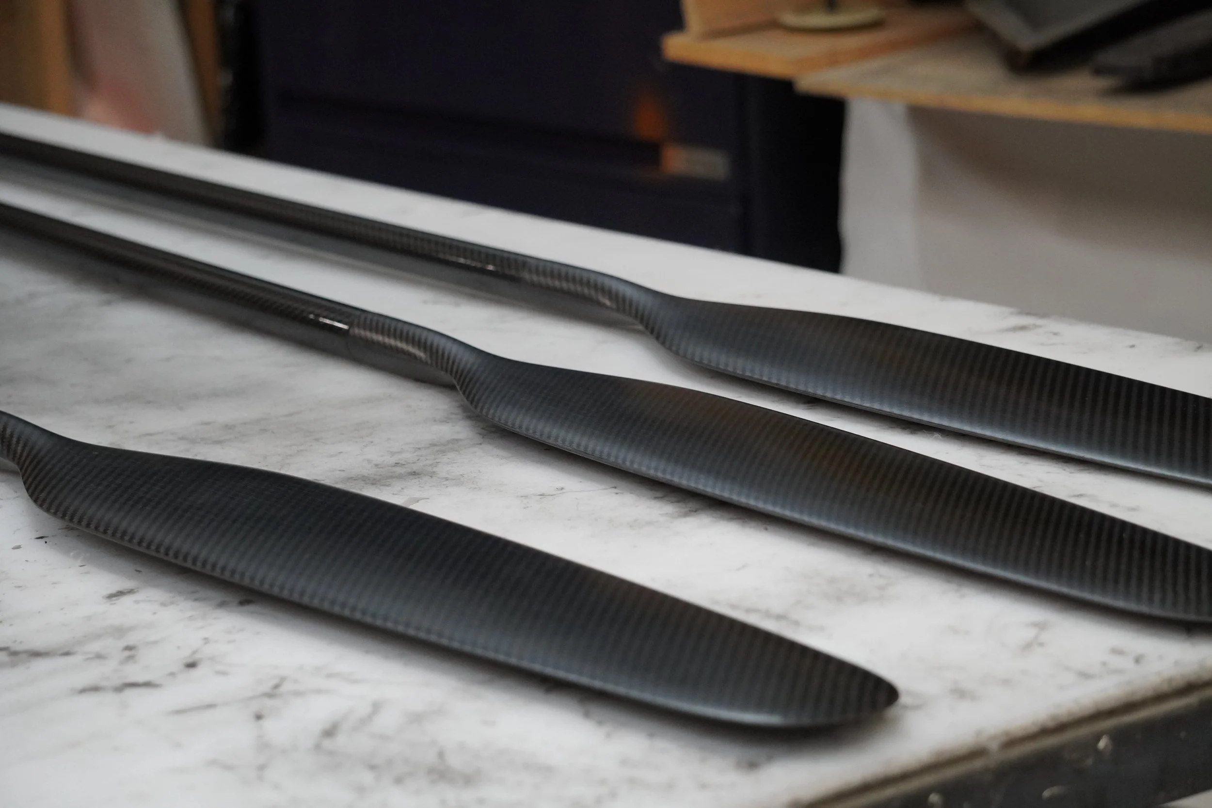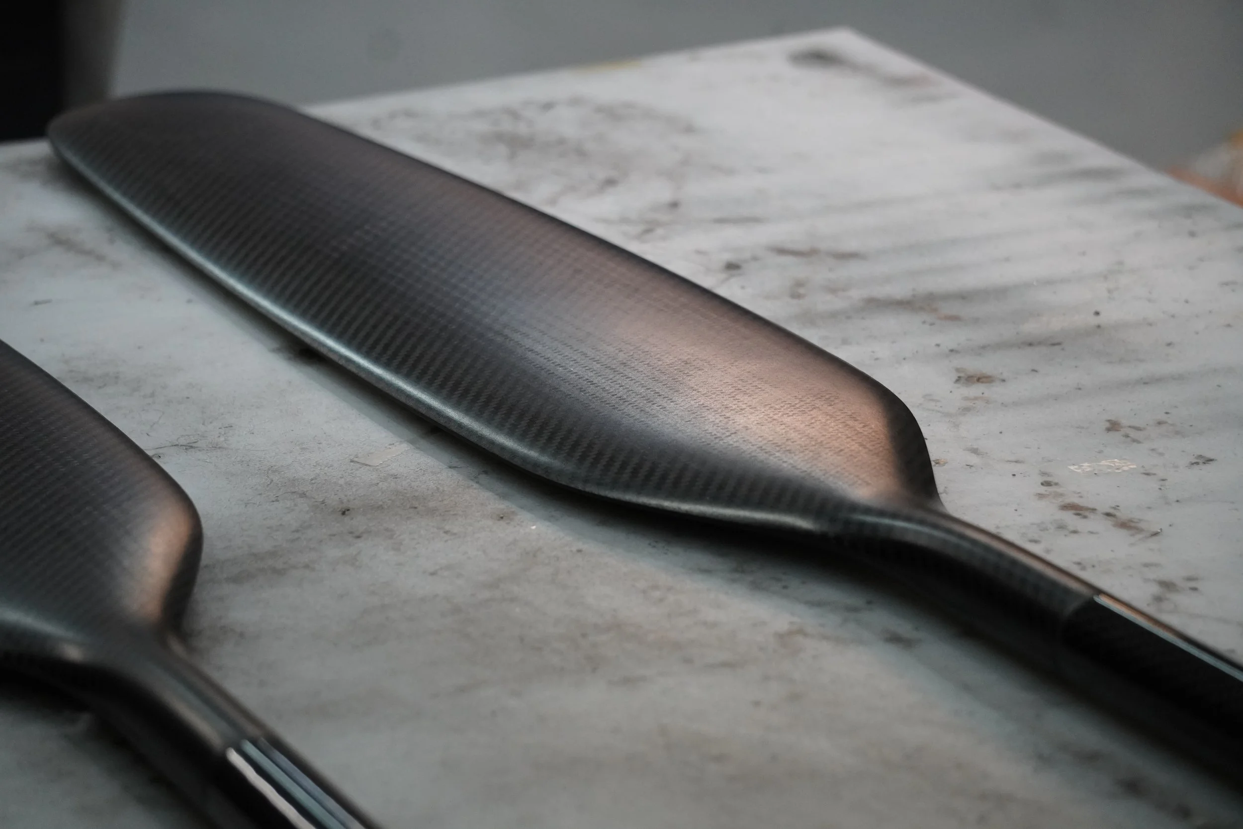 Canoe Paddle- Otter Shape Our clients engineer wished to have his own Carbon Paddle to match his Swift canoe. We designed the shape based on his preferred size and aesthetic. The result is a 500gram paddle that you can buy from us!